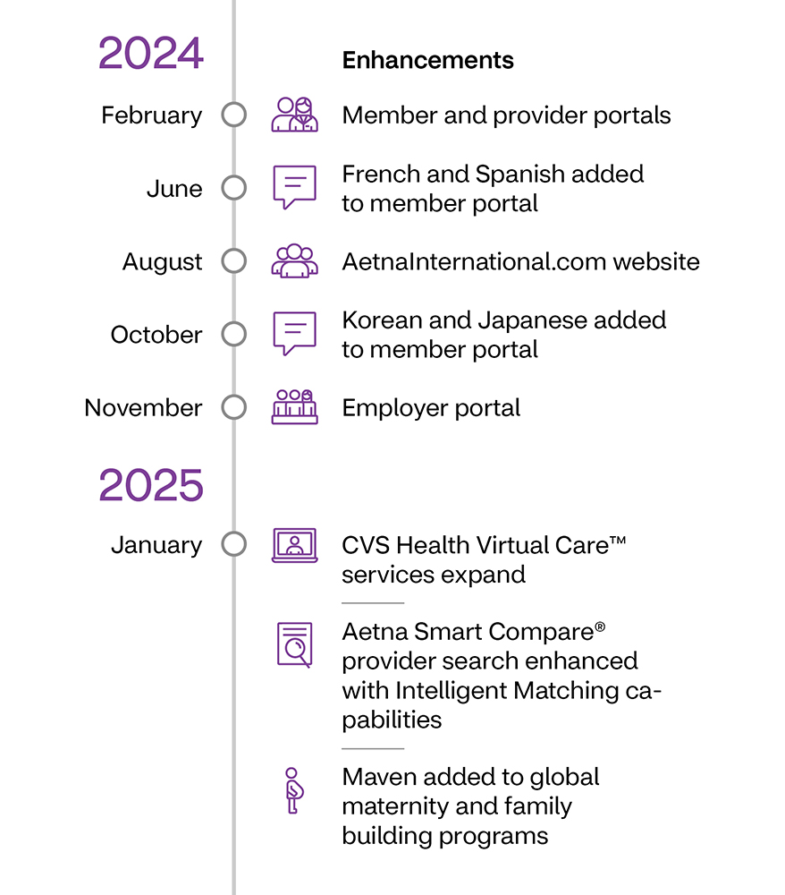As an integral part of Aetna® and the CVS Health® family of companies, Aetna International is able to offer their members solutions that no other international carrier can. In 2025, members can expect more from these resources: